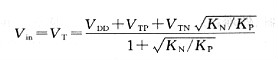 邏輯閾值電壓由于邏輯閾值電壓是式(10 1)中的-IDS與式(10 2)中的IDS相等時的電壓,所以應用這個關系能夠求得Vin:假如KN=Kp,即KN KP=1,經