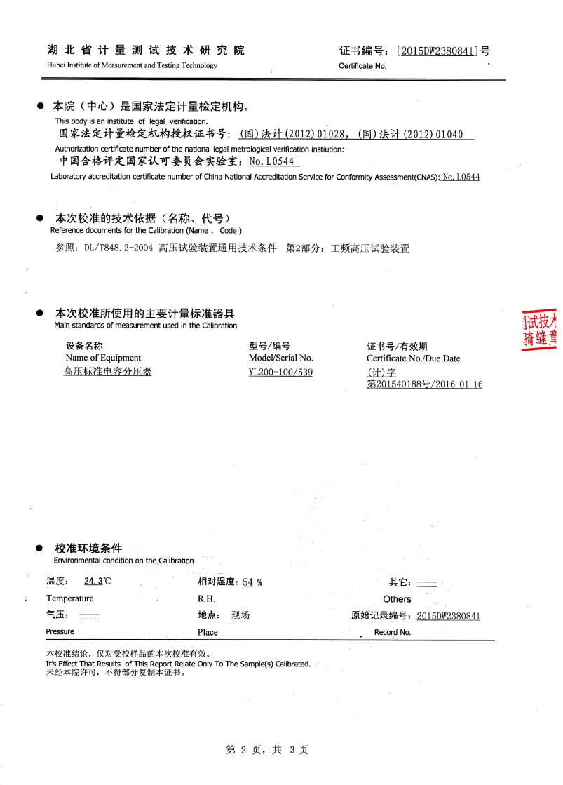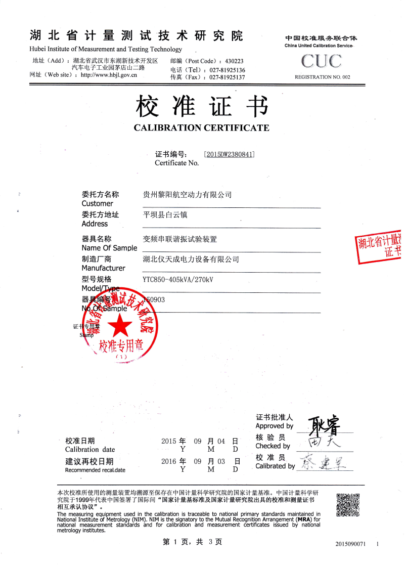 | 變頻電源1臺 | 諧振電抗器 | 勵磁變壓器1臺 | 分壓器1臺 | 適用對象 | |