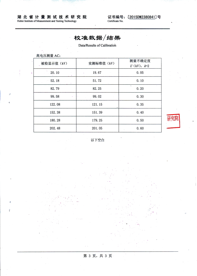 | 額定輸出電壓 | 0~130 kV (有效值)及以下 |