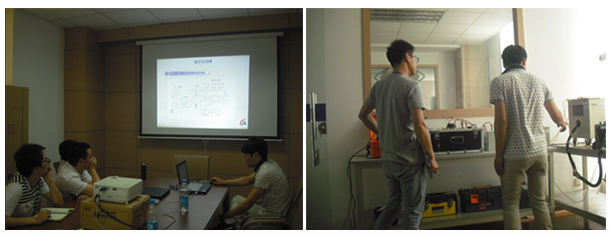 李工到達(dá)蘇州后,整體共用時(shí)3天,分別對(duì)互感器校驗(yàn)儀、電流互感器負(fù)荷箱、電壓互感器負(fù)荷箱、電流互感器、自升壓電壓互感器、雙調(diào)壓器控制箱為被試品進(jìn)行現(xiàn)場(chǎng)培訓(xùn)。因?yàn)槭亲鳛闄z測(cè)設(shè)備使用,客戶(hù)對(duì)設(shè)備的整體要求,尤其是測(cè)試精度的要求很高。因?yàn)槲夜镜脑O(shè)備質(zhì)量可靠,在現(xiàn)場(chǎng)表現(xiàn)效果非常好。并且操作簡(jiǎn)單方便,大大簡(jiǎn)化了操作流程和難度。贏得了現(xiàn)場(chǎng)客戶(hù)的一致好評(píng)!