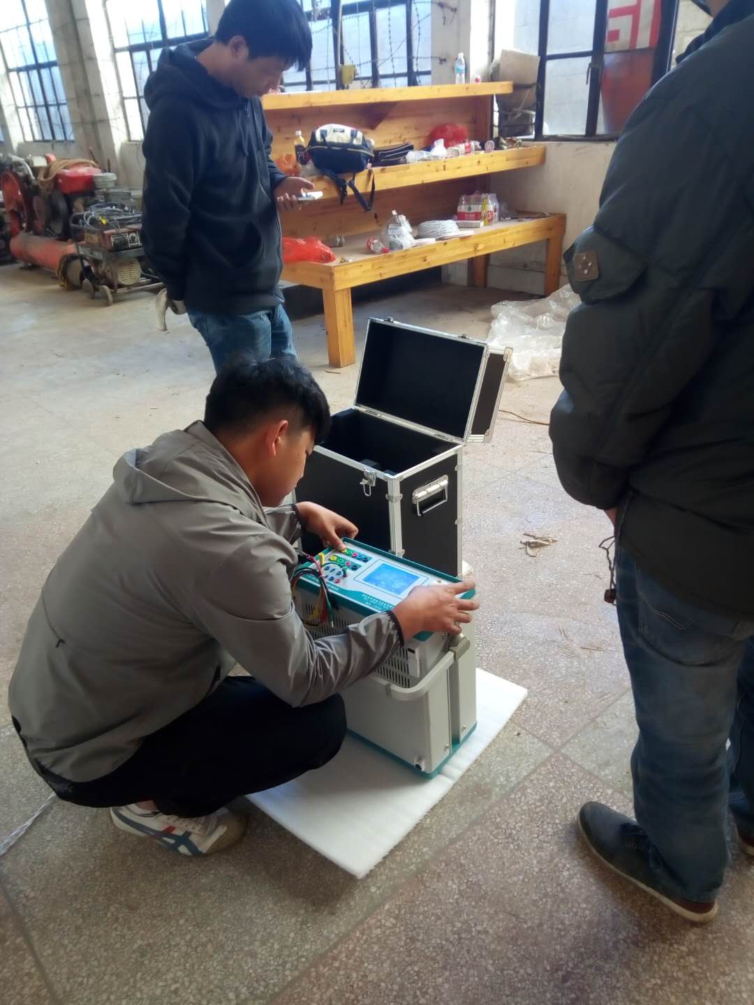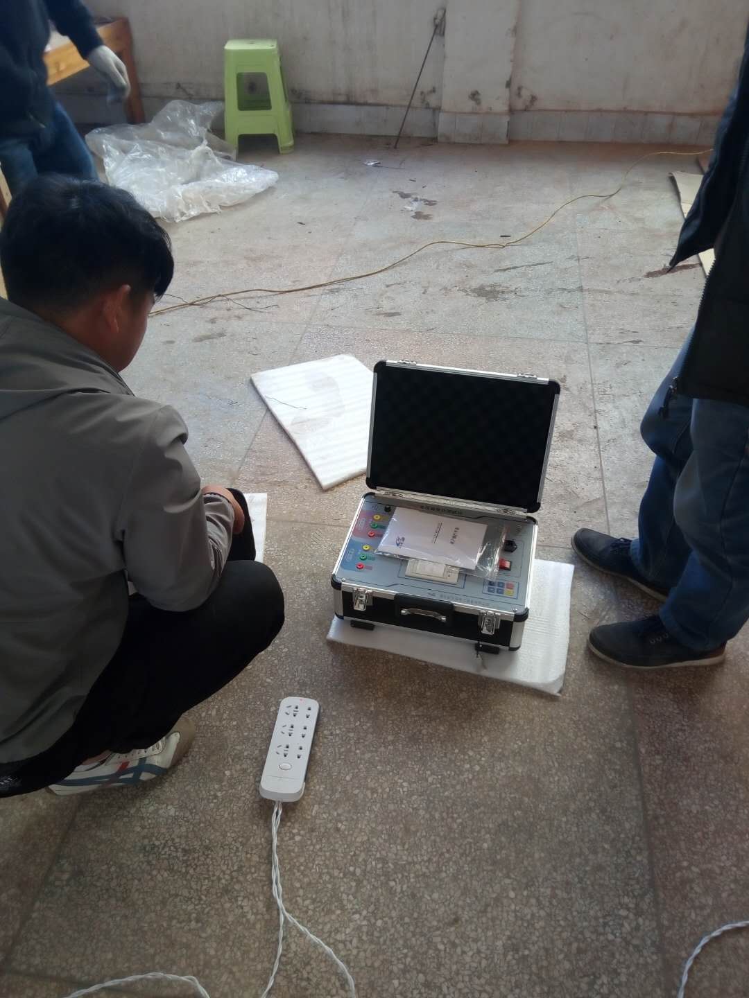 陳工很快抵達現場,與客戶進行面對面的交流,了解客戶的需求和想法。然后開始講解設備,并認真講解怎樣安全操作設備。確保客戶明白了安全操作以后,陳工帶領客戶一起做試驗——YD-J-30kVA/50kV工頻交流耐壓試驗裝置的速度測量,行程測量,電流測量等一系列試驗。我公司的設備比較先進,采用單框芯式鐵芯結構。初級繞組饒在鐵芯上,高壓繞組在外,這種同軸布置減少了漏磁通,因而增大了繞組間的耦合。產品的外殼制成與器芯配合較佳的八角形結構,整體外形顯得美觀大方。我公司產品具有體積小、重量輕、結構緊湊、功能齊全、通用性強和使用方便等特點。特別適用于電力系統、工礦企業、科研部門等對各種高壓電氣設備、電器元件、絕緣材料進行工頻或直流高壓下的絕緣強度試驗。