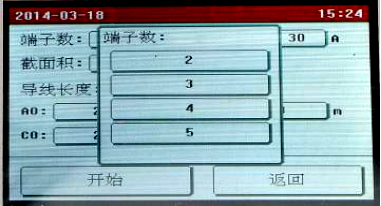 點(diǎn)擊需要修改的參數(shù)設(shè)置框設(shè)置參數(shù),全部設(shè)置完成后點(diǎn)擊“開始”按鈕,儀器即按照設(shè)置的參數(shù)開始自動(dòng)測(cè)量各端子的電阻值,并計(jì)算電阻率,自動(dòng)判斷接地線是否合格。