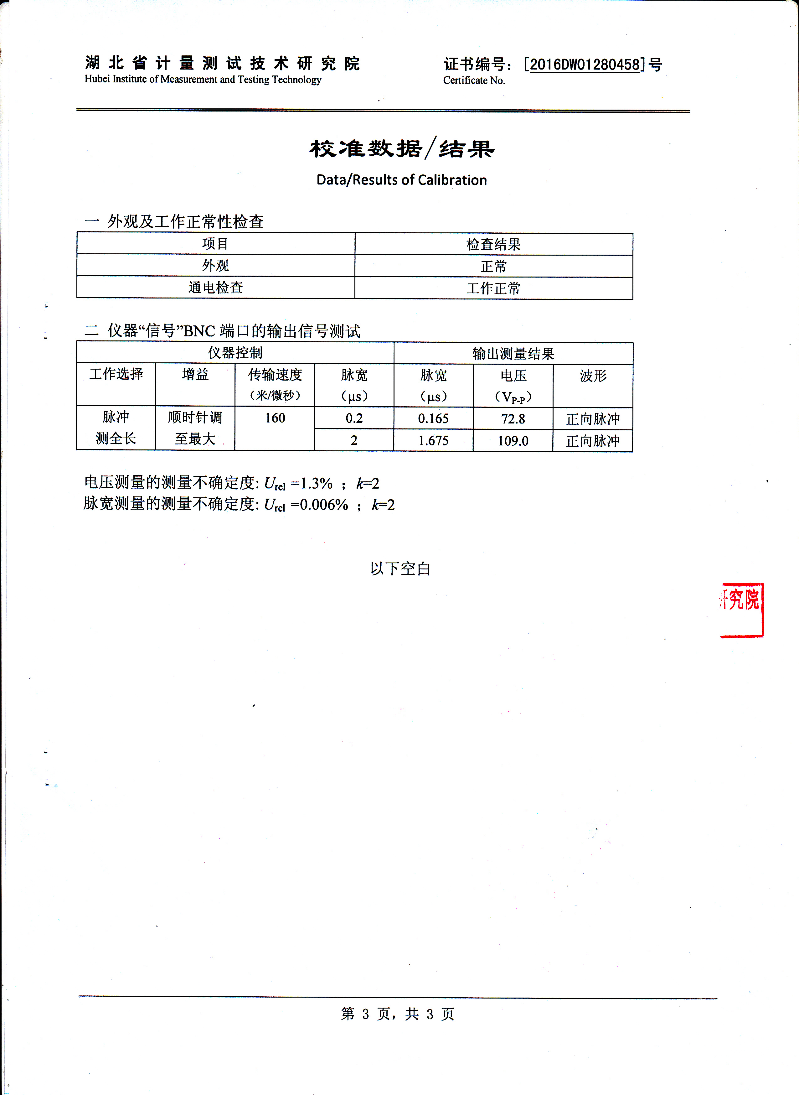 | 脈沖寬度與幅度 | 0.2us | 100~120V |