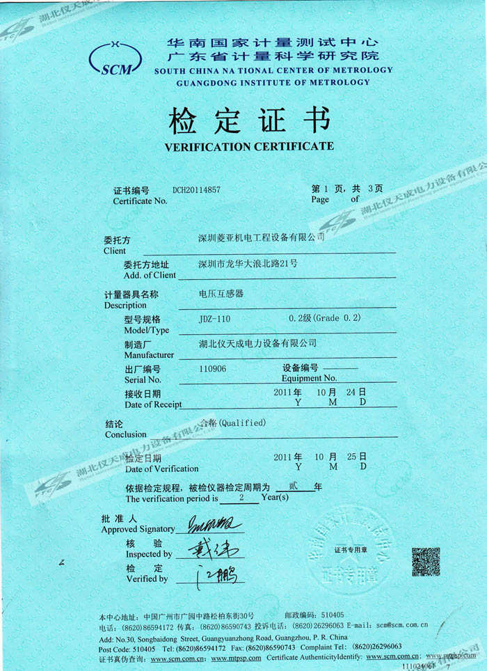 轉載:"JDZ-110電壓互感器的資質證書" 請注明來源于儀天成電力。 更多技術問題請致電儀天成電力客戶服務:027-87876585,技術部專線:027-87876585,在線客服:719388481