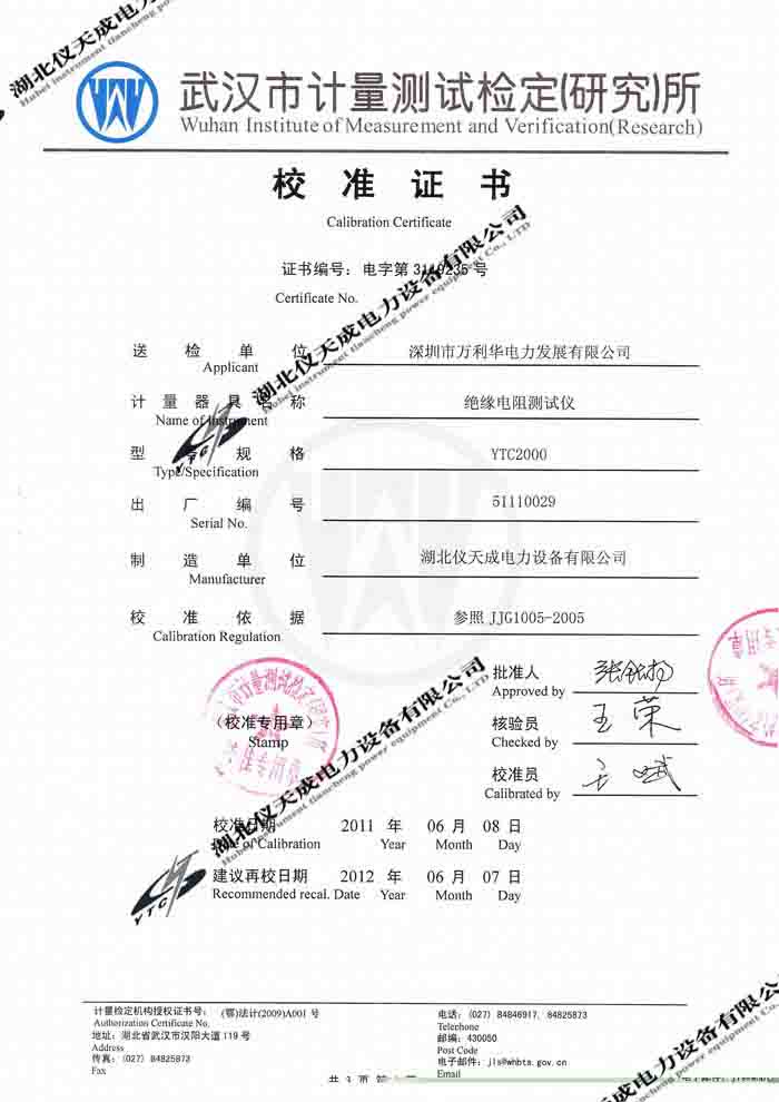 轉(zhuǎn)載:"YTC2000智能雙顯絕緣電阻測試儀的資質(zhì)證書" 請注明來源于儀天成電力。 更多技術(shù)問題請致電儀天成電力客戶服務(wù):027-87876585,技術(shù)部專線:027-87876585,在線客服:719388481